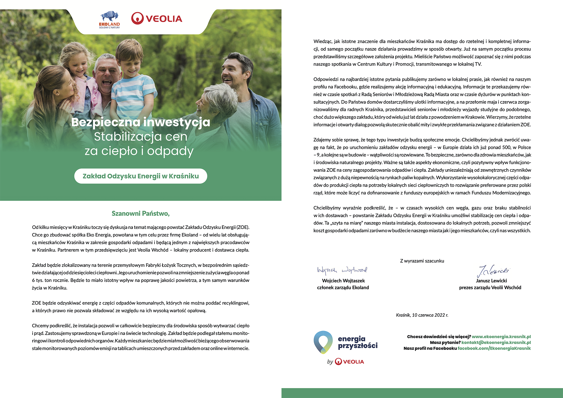 Zapraszamy do zapoznania się z listem, kierowanym do mieszkańców Kraśnika napisancyh przez przedstawicieli EkoEnergii.